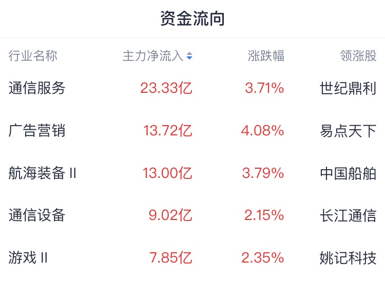主力资金方面,资金青睐通信服务、广告营销、航海装备等行业,资金出逃半导体、光学光电子、证券、汽车零部件等行业。