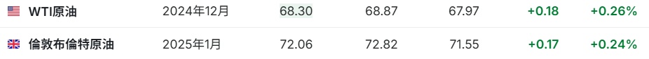 3. 截至发稿,WTI原油涨0.26%,报68.30美元/桶。布伦特原油涨0.24%,报72.06美元/桶。