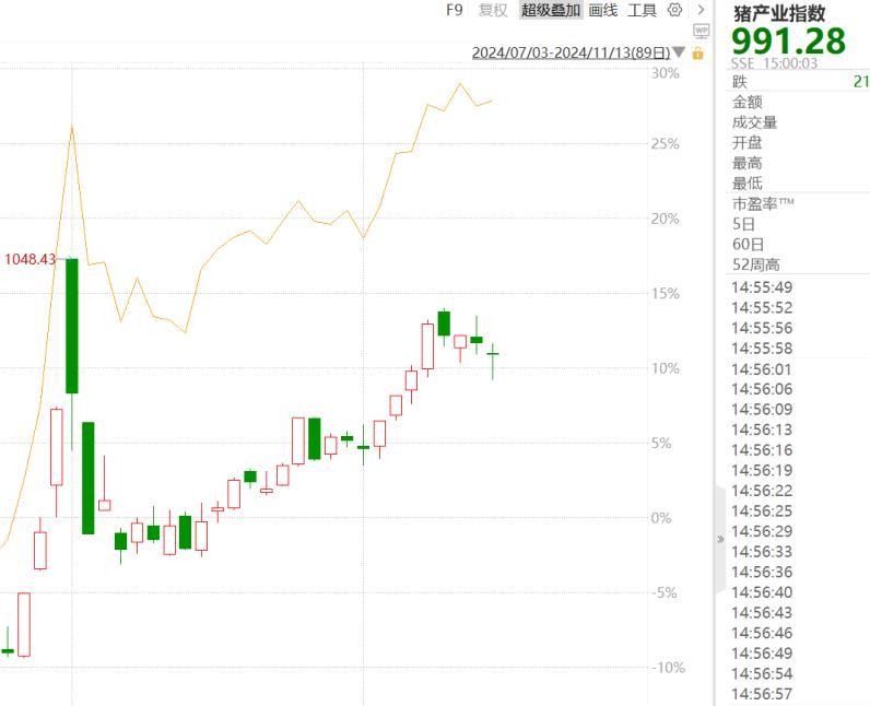 当下生逐养殖股走势较弱,这与猪企亮丽的三季报形成鲜明对比。如,牧原股份2024年前三季度实现营业收入967.75亿元,同比增长16.64%;实现归母净利润104.81亿元,同比增长668.9%;扣非净利润为112.21亿元,同比增长754.04%;基本每股收益1.94元,同比增长670.59%;