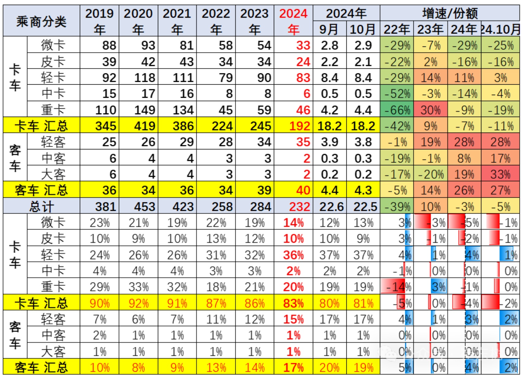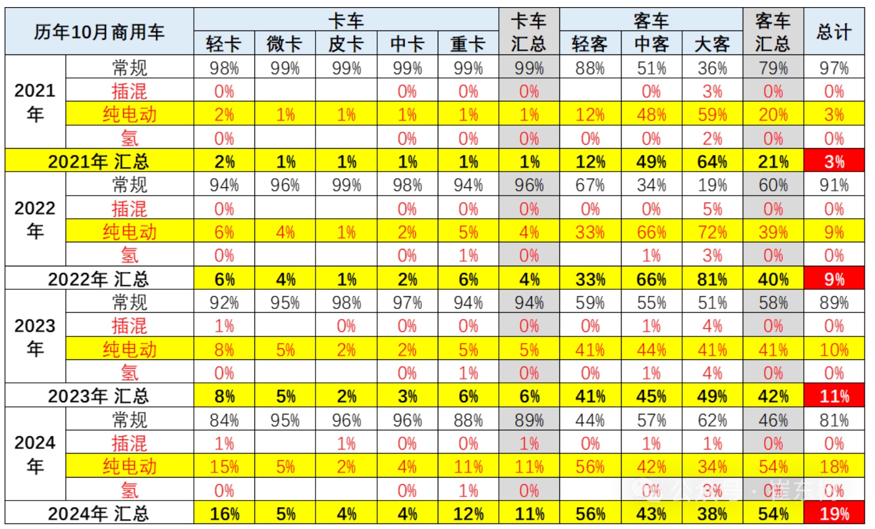 2024年1-10月份,新能源商用车在商用车渗透率达到19%的水平,相对于去年实现了较好提升。