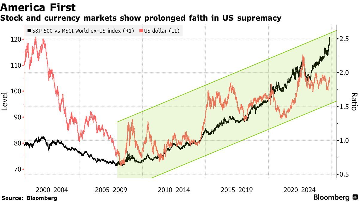 但投资者关心的是,“特朗普交易”还能走多远?股票、公司债券等资产相对于历史水平而言已经显得昂贵,特朗普的贸易保护主义政策可能会导致通胀卷土重来、并迫使美联储在更长时间内将利率维持在高位。此外,美国经济正面临不断膨胀的财政赤字和已现疲态的劳动力市场,这可能会给经济增长前景带来压力。