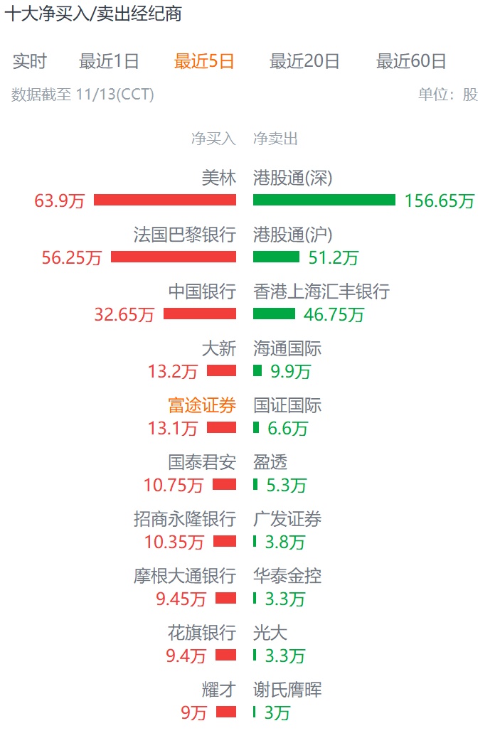聚焦开拓药业的交易席位来看,近5日开拓药业买方席位前三位分别为美林证券、法国巴黎银行和中国银行,分别买入63.90万股、56.25万股和32.65万股;而卖方来看,港股通(深)为最大卖方,卖出156.65万股;港股通(沪)为第二大卖方,卖出51.20万股。从资金面来看,11月13日开拓药业成交量达到1180.35万股,成交额1571.78万港元,当日净流出264.79万港元。