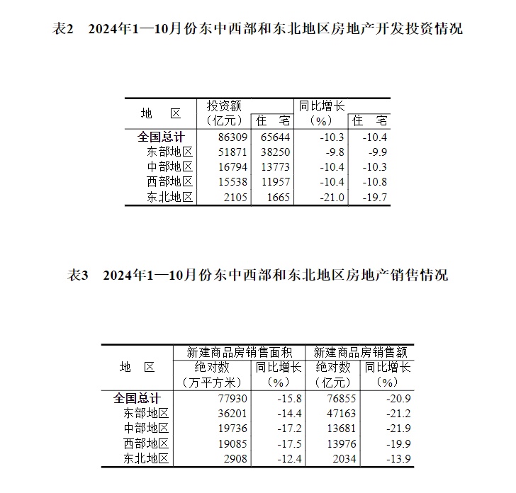 表1 2024年1—10月份全国房地产开发和销售情况