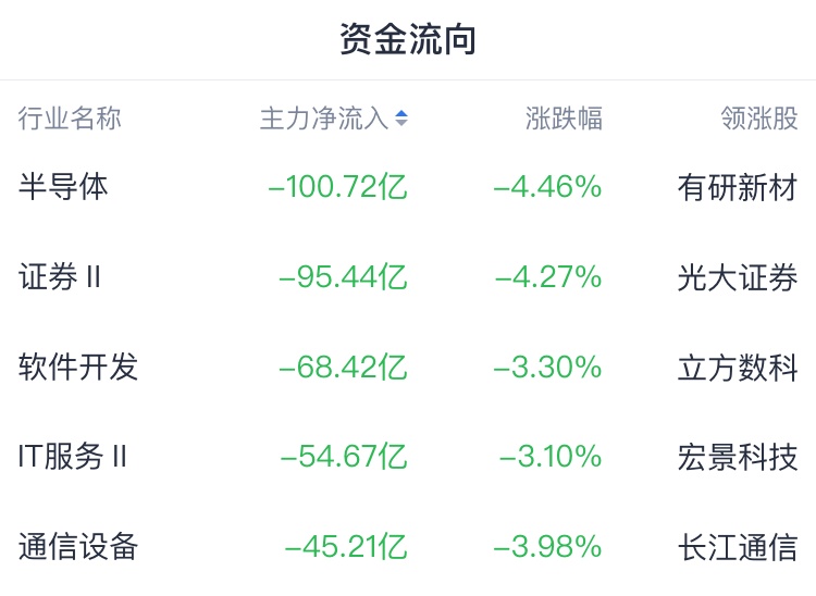主力资金方面,资金青睐广告营销、通信服务、教育、铁路公路等行业,资金出逃半导体、软件开发、证券、IT服务等行业。