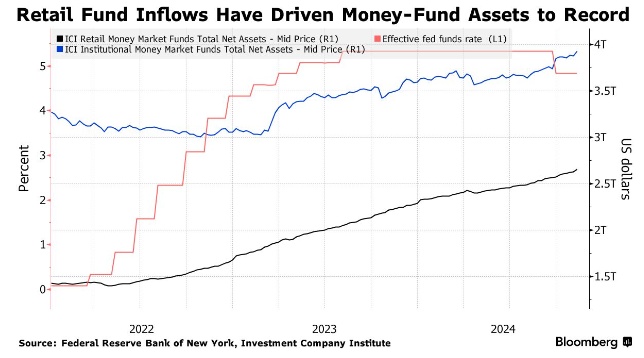 此外,银行迅速将美联储近期降息的影响转嫁给消费者,使得货币市场成为他们存放现金的更具吸引力的地方。