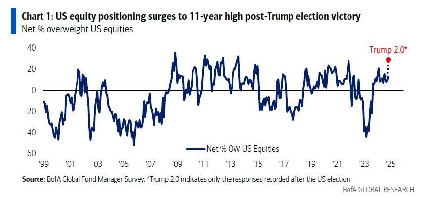 美国银行11月份的全球基金经理调查显示,投资者上调了对美国经济增长和通胀的预期,并将信心转向小型股。
