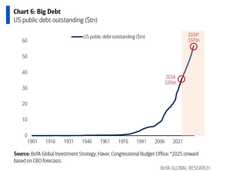 1. 若收益率升至5%,则买入美国国债。他认为美联储将通过2025年不降息来抑制通胀预期,而美国国债将迫使特朗普政府降低关税。他指出,新政府允许第二波通胀将是政治自杀,尽管难以扭转美国政府债务和支出的长期趋势,但新政府对巨额债务和支出的认识表明,财政支出将减少。