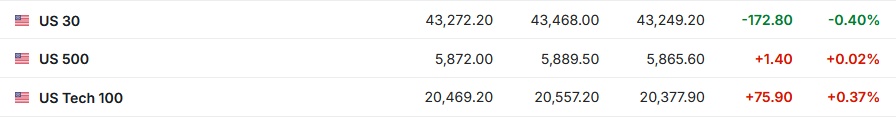 1. 11月18日(周一)美股盘前,美股三大股指期货涨跌不一。截至发稿,道指期货跌0.40%,标普500指数期货涨0.02%,纳指期货涨0.37%。