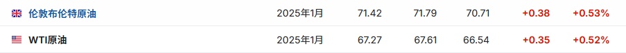 3. 截至发稿,WTI原油涨0.52%,报67.27美元/桶。布伦特原油涨0.53%,报71.42美元/桶。