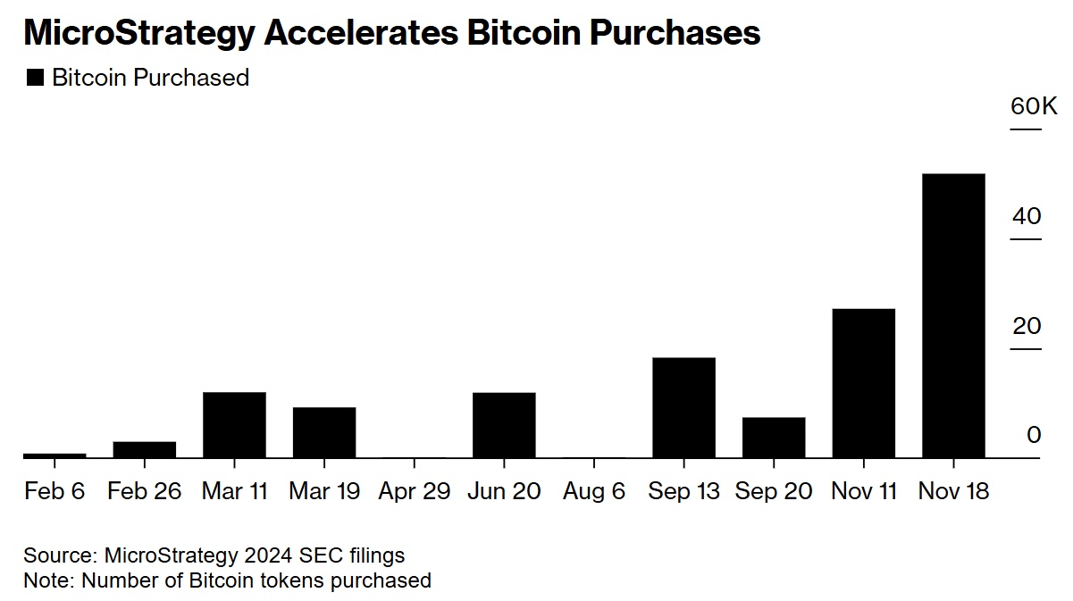 根据美国证券交易委员会周一提交的文件,该公司的企业战略包括购买数字资产。该公司在 11 月 11 日至 11 月 17 日期间购买了约 51,780 枚比特币。此前,该公司在 10 月 31 日至 11 月 10 日期间购买了超过 27,000 枚比特币,并在 9 月份进行了两次大规模收购。该公司目前拥有价值约 300 亿美元的比特币。