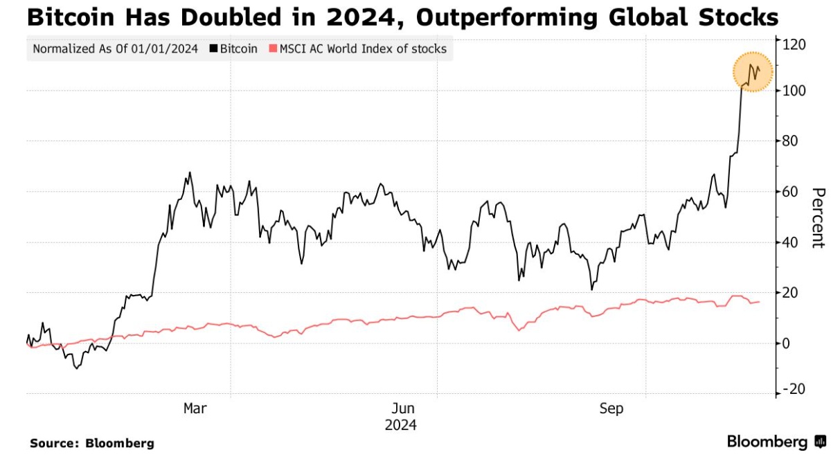 智通财经APP注意到,比特币重新回到历史最高点附近,这一系列发展凸显了在加密货币支持者特朗普的领导下,美国对数字资产行业的接受度不断加深。