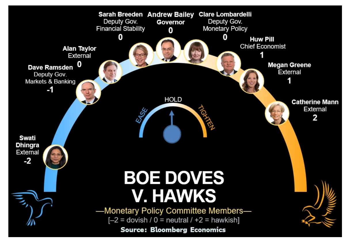 泰勒的言论更为鸽派,表明在取代鹰派乔纳森·哈斯克尔之后,货币政策委员会的平衡发生了变化。自加入以来,泰勒一直投票赞成共识,首先是 9 月份维持利率不变,然后是 11 月份降息四分之一个百分点。