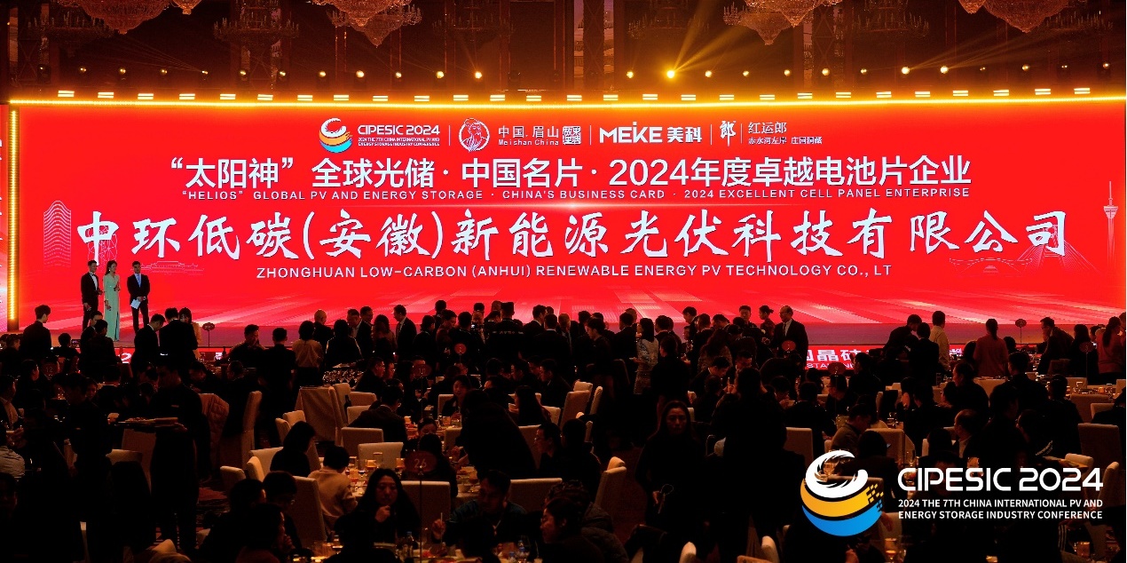 中环新能源控股集团有限公司(01735)旗下中环低碳(安徽)新能源光伏科技有限公司(简称:“中环低碳”)凭借在光伏领域的发展成就和创新成果,荣获“‘太阳神’全球光储·中国名片·2024年度卓越电池片企业”和“中国光储创新技术成果奖”。中环低碳总经理刘志锋博士受邀出席活动并作精彩分享。