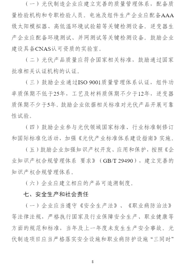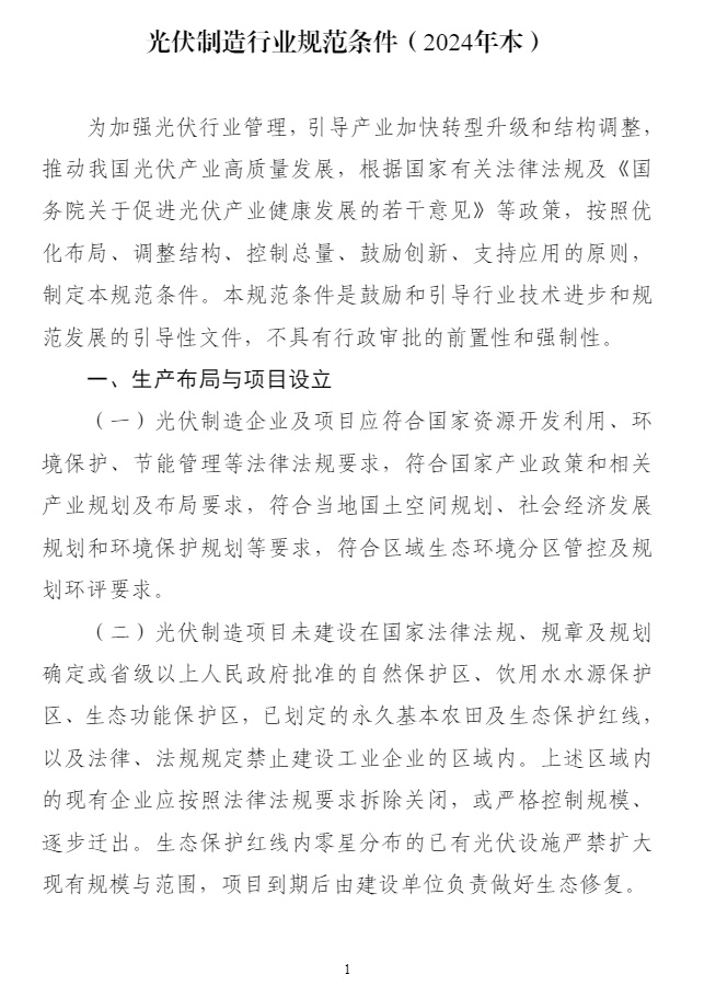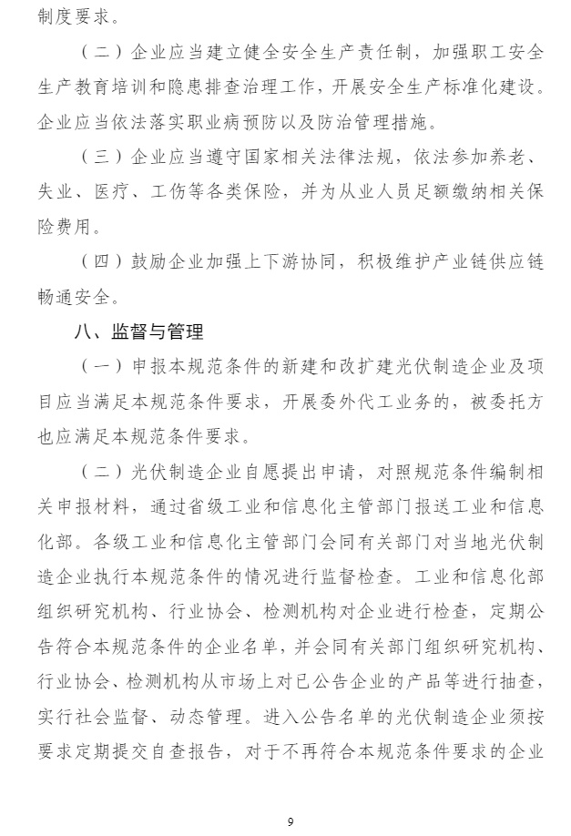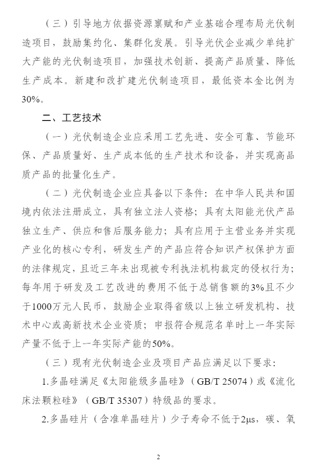 智通财经APP获悉,11月20日,工业和信息化部对《光伏制造行业规范条件》和《光伏制造行业规范公告管理暂行办法》进行了修订。引导地方依据资源禀赋和产业基础合理布局光伏制造项目,鼓励集约化、集群化发展。引导光伏企业减少单纯扩大产能的光伏制造项目,加强技术创新、提高产品质量、降低生产成本。新建和改扩建光伏制造项目,最低资本金比例为30%。