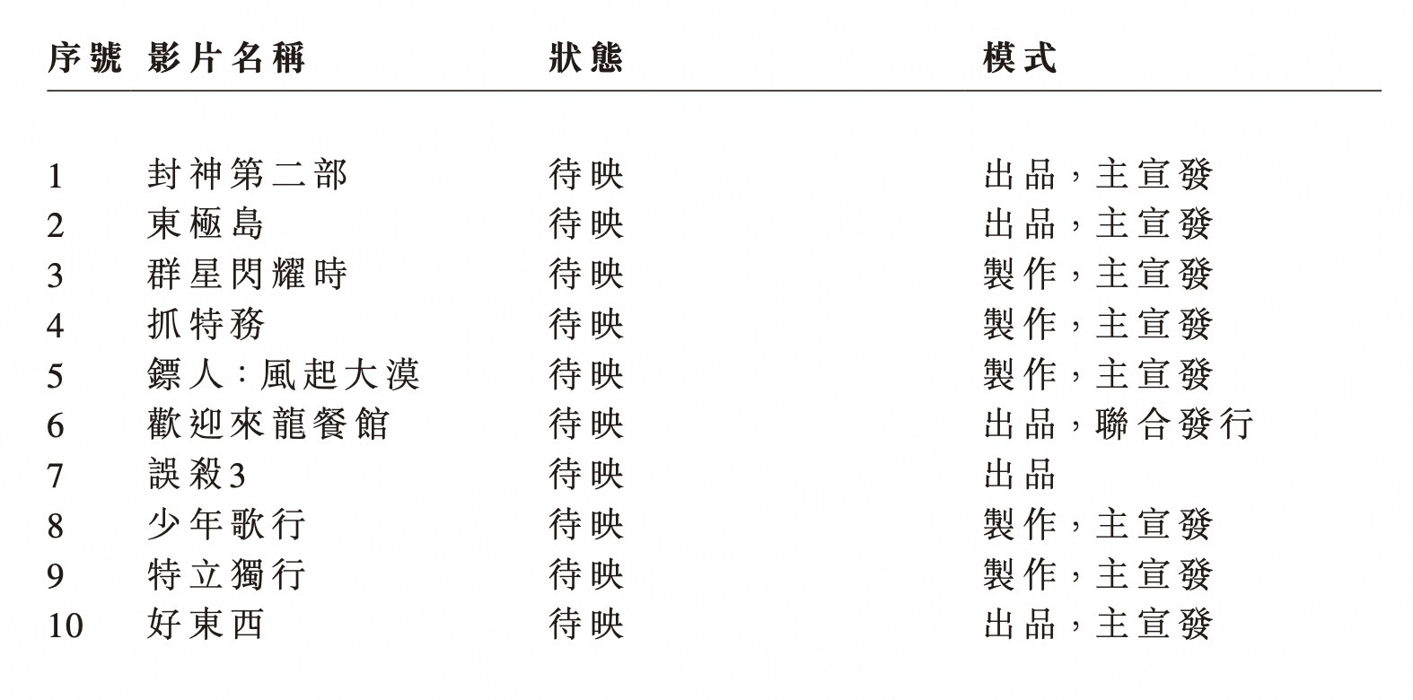 报告期内,阿里影业共储备电影70部,其中,投资待映项目35部,自主研发与合制项目35部。业绩公告披露,《封神第二部:战火西岐》、《东极岛》、《群星闪耀时》、《抓特务》、《镖人:风起大漠》、《欢迎来龙餐馆》、《误杀3》、《少年歌行》、《特立独行》、《好东西》等影片将根据市场情况陆续上映。11月18日,电影《好东西》豆瓣开分高达9.1,同日,点映票房大幅超预测,揽获同档期点映上座、场均人次双料第一,影片将于11月22日正式上映。