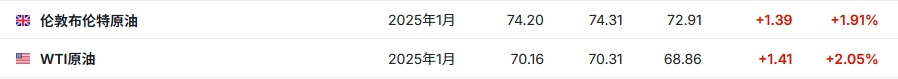 3. 截至发稿,WTI原油涨2.05%,报70.16美元/桶。布伦特原油涨1.91%,报74.20美元/桶。