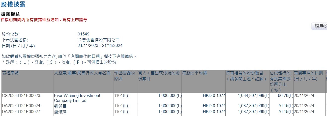 智通财经APP获悉,香港联交所最新资料显示,11月20日,Ever Winning Investment Company