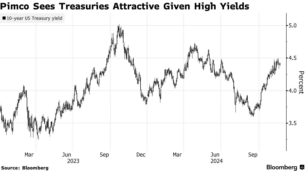 智通财经APP获悉,太平洋投资管理公司(Pimco)认为,鉴于近期美国国债收益率的大幅攀升及美联储未来可能进一步降息的前景,美国国债目前是一项具有吸引力的投资选择。周四数据显示,基准10年期美国国债收益率已跃升至约4.4%,相比9月中旬的低点增长了超过四分之三个百分点,且各期限债券收益率均重返4%以上水平。