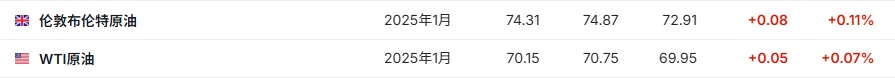 3. 截至发稿,WTI原油涨0.07%,报70.15美元/桶。布伦特原油涨0.11%,报74.31美元/桶。