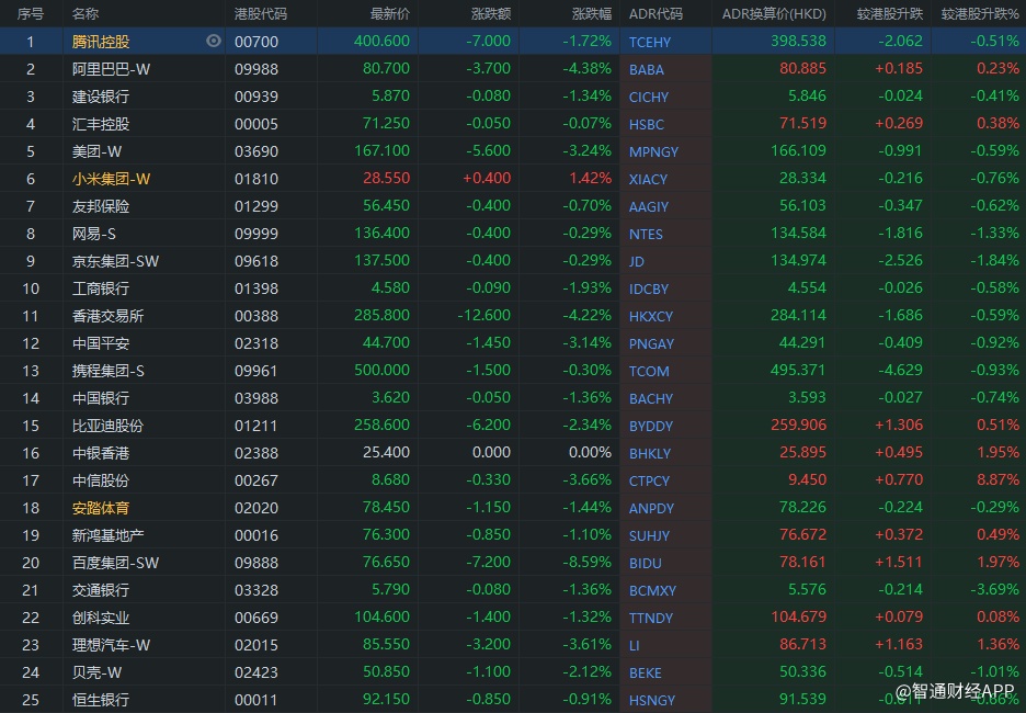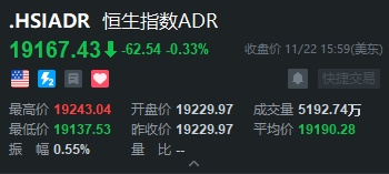 智通财经APP获悉,周五美股三大指数集体上涨,恒生指数ADR下跌,按比例计算,收报19167.43点,较香港收市下跌62.54点或0.33%。