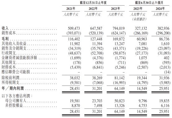近年来,公司营收、利润双双稳步增长,2021-2023年间收入分别为5.09亿元、6.48亿元和7.94亿元,利润分别为2845.1万元、3120.1万元和6414.9万元。2024年上半年,公司营收3.83亿元,同比增长17%,利润则为2595.1万元,同比增长78.37%,盈利指标表现较为强劲。