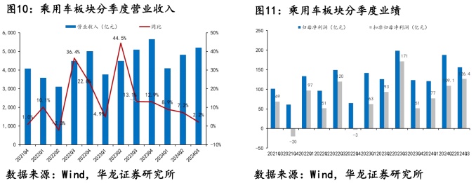 汽车行业的整体改善,也反映在了相关企业的业绩上。根据华龙证券统计,三季度乘用车板块实现营收5195亿元,同比、环比分别增加2.2%和7.8%,盈利能力环比修复明显,扣非归母净利润同比减少26.2%,环比增加15.9%。