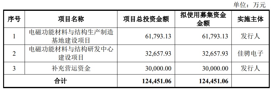 据了解,佳驰科技募集资金扣除发行费用后拟用于以下列项目: