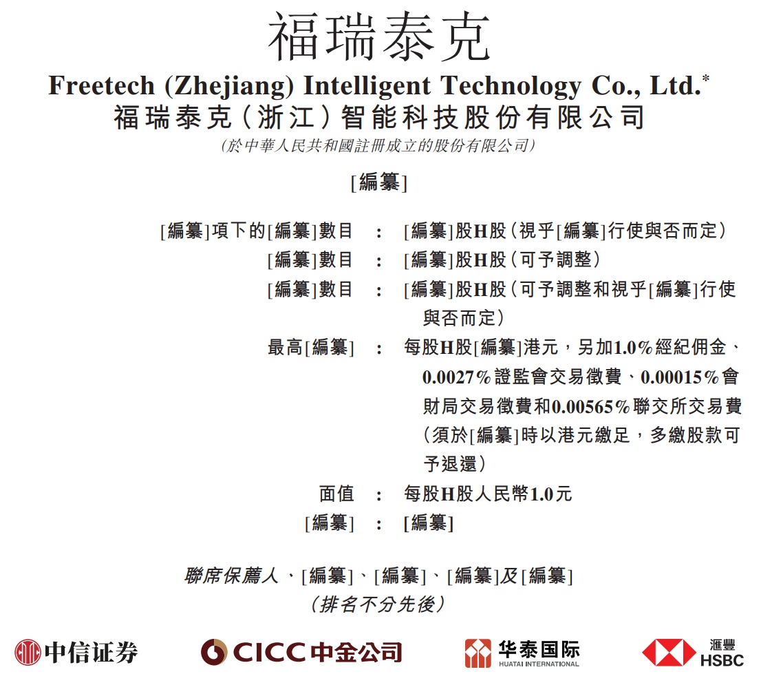 智通财经APP获悉,据港交所11月22日披露,福瑞泰克(浙江)智能科技股份有限公司(简称:福瑞泰克团)向港交所主板提交上市申请书,中信证券、中金公司、华泰国际、汇丰为其联席保荐人。