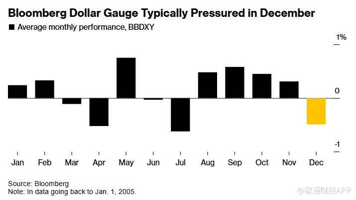接受调查的专业投资者和散户投资者都有足够的信心放弃以史为鉴。从2005年以来的数据来看,彭博美元基准指数在12月平均下跌0.5%,而12月是美元的季节性疲软月份。受访者表示,墨西哥比索将首当其冲地受到未来美元走强的影响,其次是日元和巴西雷亚尔。