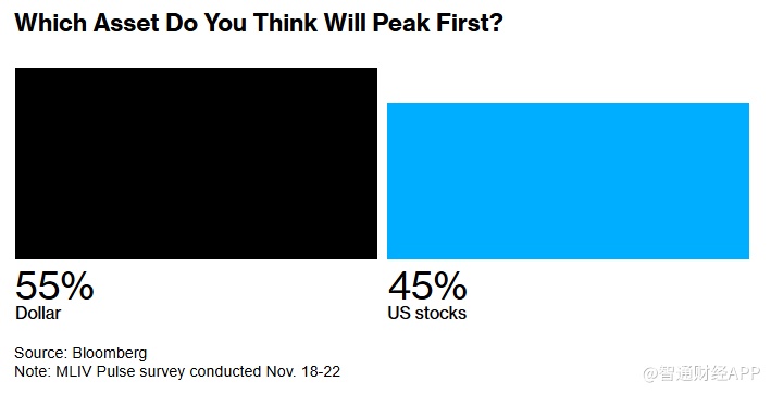 大多数受访者(约55%)预计美元价值将在美国股市之前见顶。与此同时,超过一半的受访者表示,他们计划在未来一个月保持对标普500指数的稳定敞口。