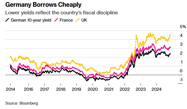 德国借贷成本仍然非常低——收益率较低反映了该国的财政纪律严明