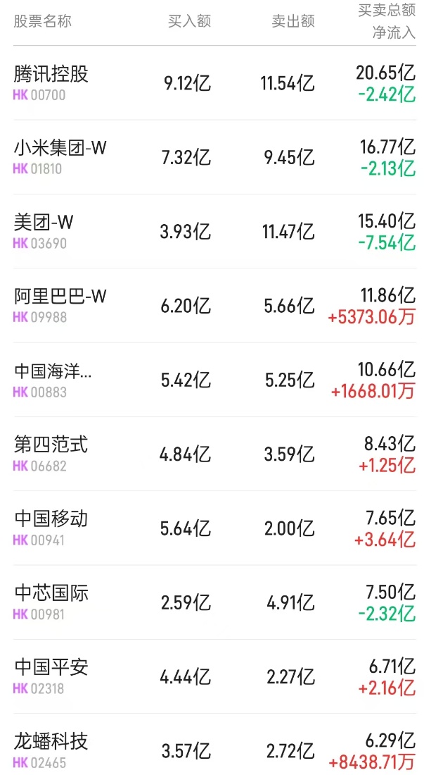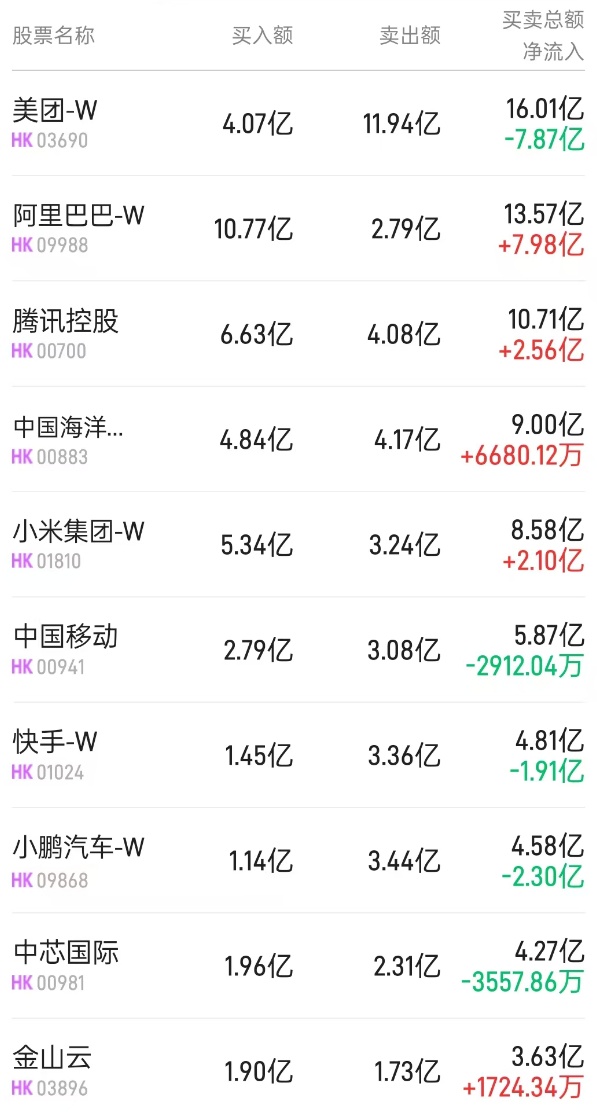 中国移动(00941)获净买入3.34亿港元。消息面上,香港宽频公布,董事会已收到潜在要约人中国移动香港提出无约束力建议,表示可能提出现金收购要约,以收购公司全部已发行普通股份。此前有传闻称,中国移动愿意以每股最少5港元收购香港宽频主要股东的持股。此外,中国移动近期公布,10月,5G网络客户数达到近5.4亿户,环比净增626万户,较9月环比净上客590.8万户有所加快。