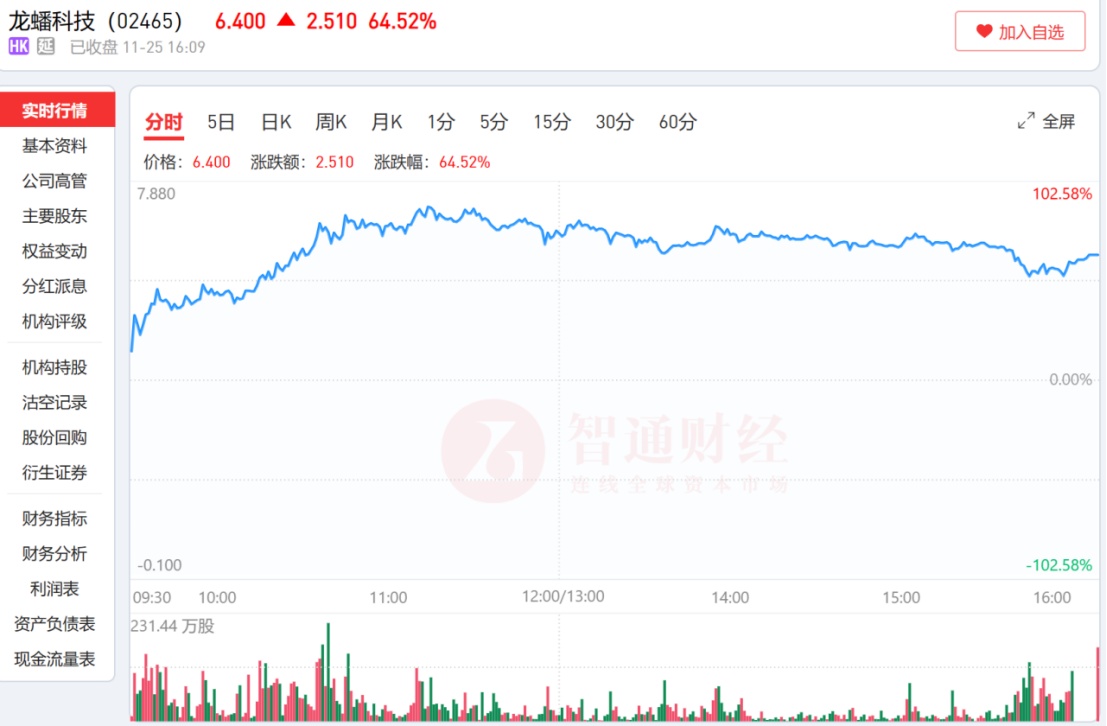 在股价低迷了近一个月后,龙蟠科技(02465) 在获纳入港股通名单的首日,股价暴涨超90%。