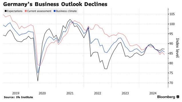 “德国经济陷入困境,”Ifo经济研究所所长克莱门斯·菲斯特周一在一份声明中表示。“企业对未来几个月再次抱有怀疑态度。”