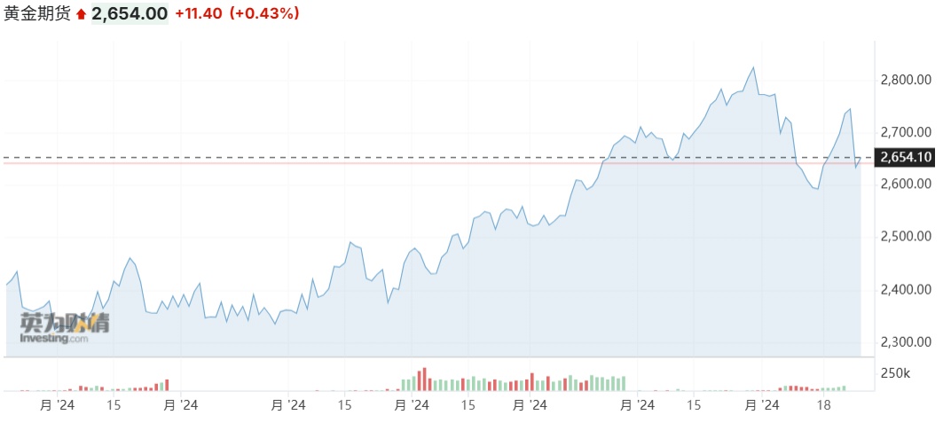 Comex 近月黄金期货收跌3.4%,至2616.80美元/盎司,这是自2020年11月9日以来美元最大单日跌幅,也是自2021年6月17日以来最大单日百分比跌幅;此举终止了连续五个交易日的上涨势头,但金价今年迄今仍上涨了27%。Comex 近月白银期货收跌3.5%至30.210美元/盎司,为9月12日以来的最低结算价。