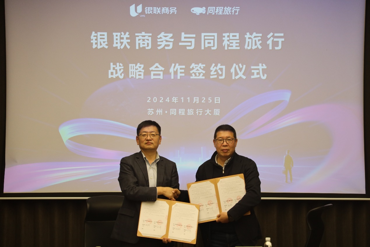 智通财经APP获悉,11月25日,同程旅行(00780)与银联商务支付股份有限公司(下称:银联商务)达成战略合作,根据协议,双方将积极探索和开展在各类场景下的全渠道综合支付业务、营销业务、大数据业务等合作。银联商务党委委员、副总裁孙战平与同程旅行CMO白志伟代表双方签约。