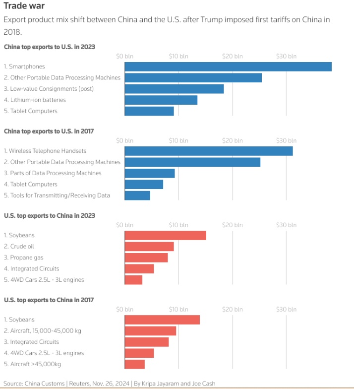来自K2资产管理公司的研究主管乔治·布伯拉斯表示:“25%的关税头条新闻……虽然尚未成为政策,但很好地表明,在下一任美国总统特朗普的任期内,他们将不再容忍中国公司从中国向美国-北美自由贸易协定的伙伴国们转移出口制造业。”
