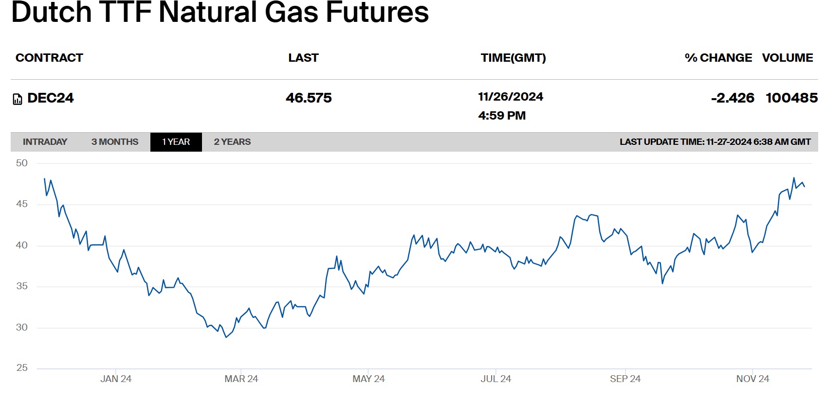 欧洲气候转冷以及供暖需求的大幅增加可能会给传统的管道天然气供应商以及全球液化天然气市场的供应端带来更大压力。但从长远角度来看,新一批液化天然气产能进入市场应该会缓解这种供应非常紧张的局面。