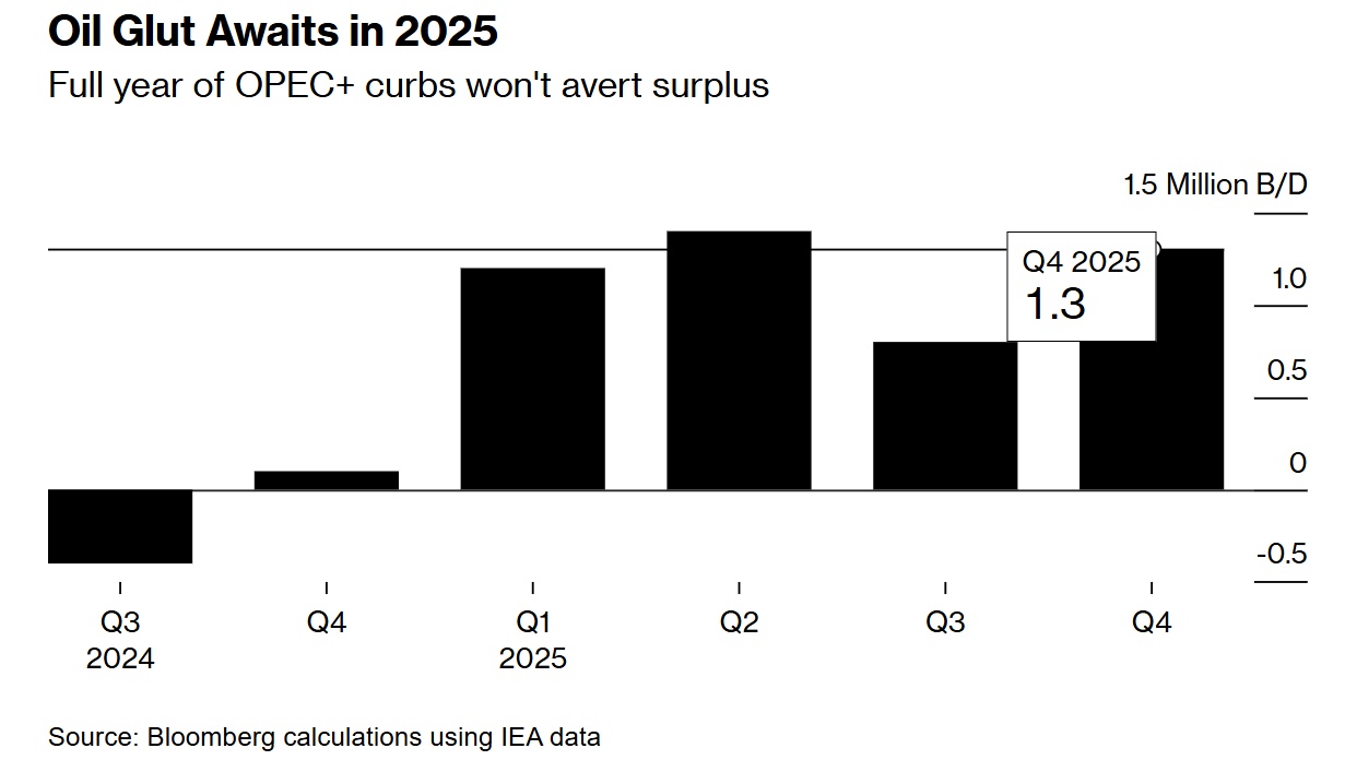 摩根士丹利分析师马丁·拉茨表示:“石油市场似乎将在 2025 年出现大幅盈余。”