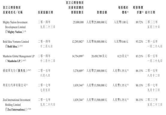 据此前公告显示,在与一众IPO前投资者订立的投资协议中,每股价格大部分在人民币0.66元至1.35元之间,较发行价折让超八成,还有Wise Axis Limited、Triton Venture和Grand ZhangYQ Holding的每股价格为人民币3元,较发行价折让约69%。