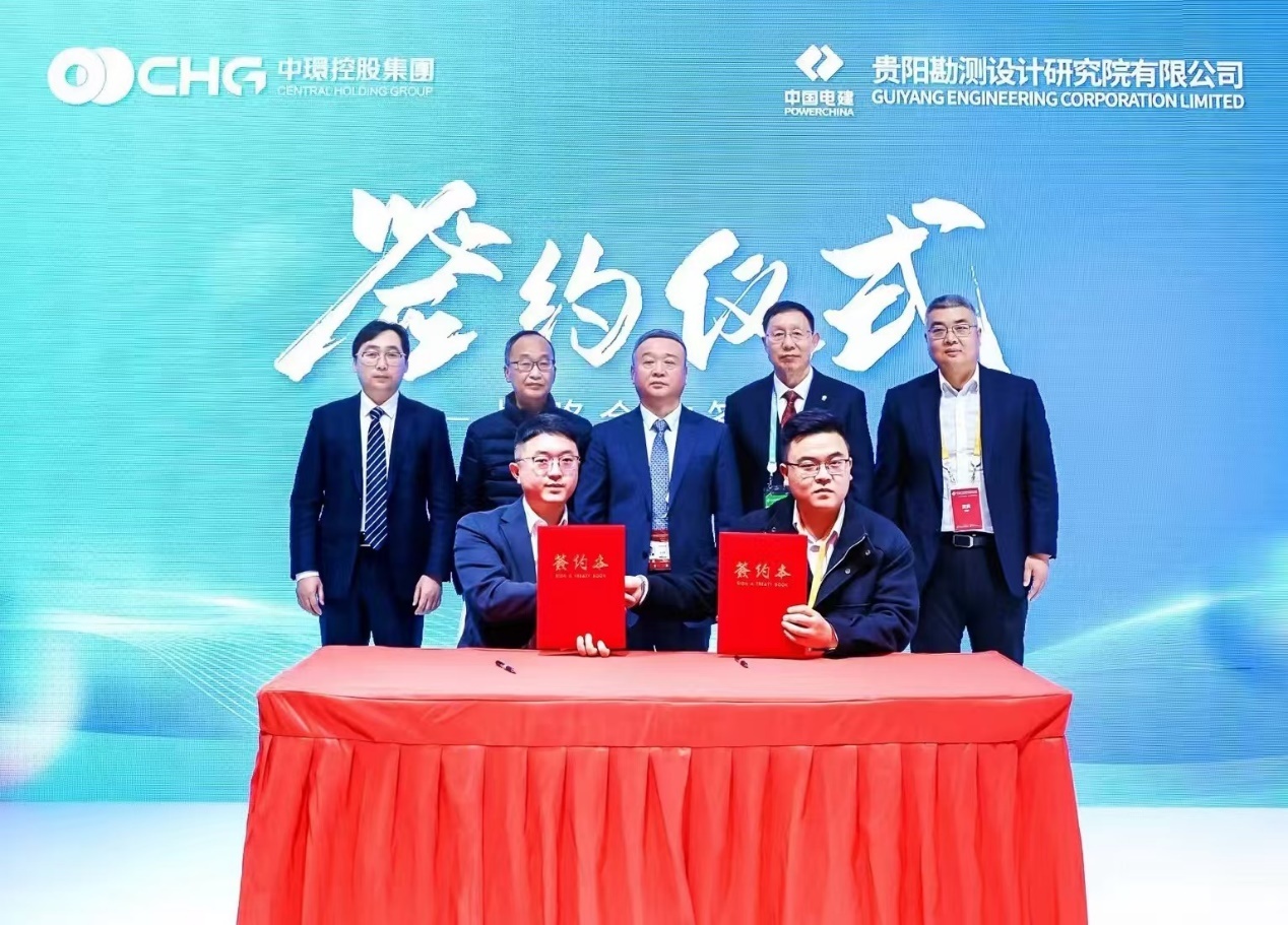 图 | 中环低碳新能源营销中心销售副总经理袁伯文代表中环新能源(01735),与中国电力建设集团贵阳勘测设计研究院、中国能源建设集团安徽华电设计院签署合作协议