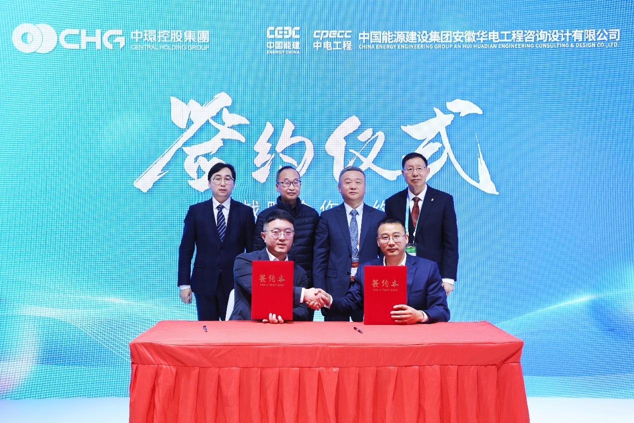 安徽省贸促会主任、中国国际商会安徽商会会长郑东涛,安徽省贸促会二级巡视员卢志宏,淮南市贸促会秘书长熊健,淮南市贸促会主任蔡瑞婷,中国电力建设集团贵阳勘测设计研究院副总经理刘金洋,中国电力建设集团贵阳勘测设计研究院经营部副主任严浩,中国能源建设集团安徽华电设计院副总经理郑少将,中国能源建设集团安徽华电设计院新能源处主任许淼,中环新能源控股集团党委书记、副总裁李梦琳,中环低碳新能源(安徽)集团有限公司总经理刘志锋,中环低碳新能源营销中心销售副总经理袁伯文等领导出席签约仪式,共同见证携手描绘光伏新能源绿色新篇的里程碑时刻。