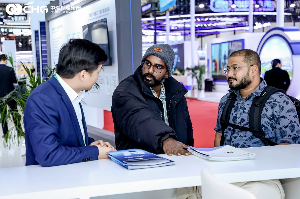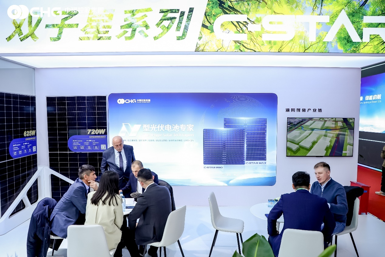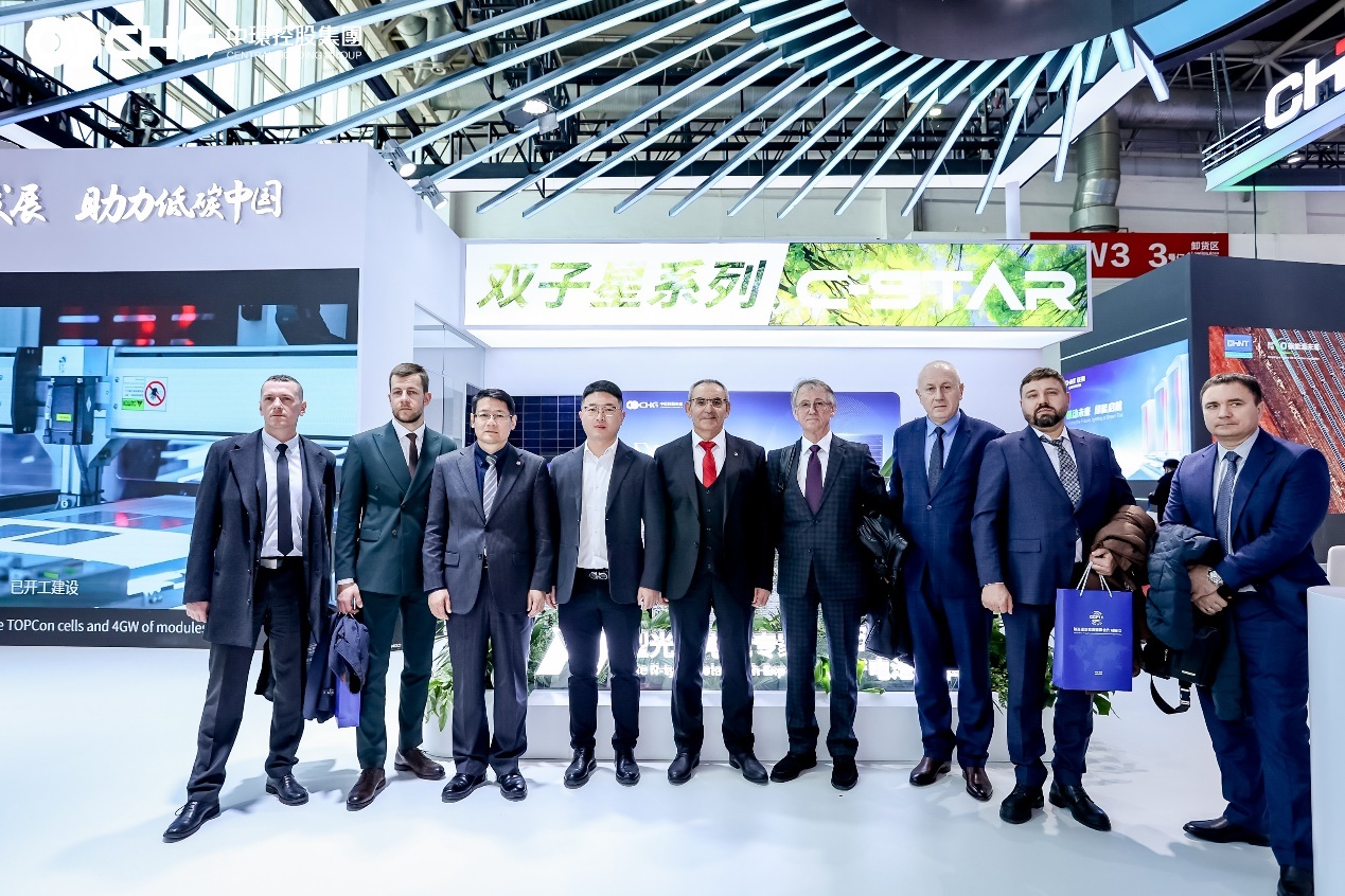 拓展全局视野,迈向世界征程。中环新能源(01735)长期坚持可持续发展战略稳健前行,高效优质的产品与绿色解决方案收获诸多外国代表团关注。来自阿联酋、俄罗斯、中亚等多个国家和地区代表团驻足中环新能源(01735)展台。李梦琳书记、袁伯文副总经理还分别走访了匈牙利馆和央企中能建展区,了解新能源企业去匈牙利开展新能源投资的环境与政策,中能建公司对新能源发展的布局与技术方向。