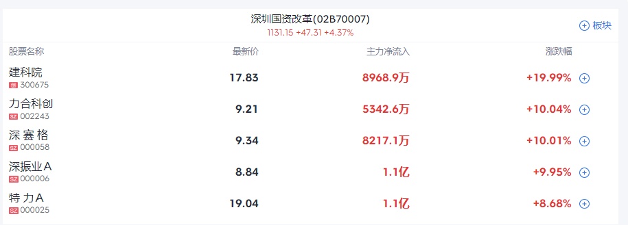 深圳国企改革板块震荡冲高,美之高30%涨停,建科院20%涨停,深赛格、力合科创、深振业A等多股涨停。