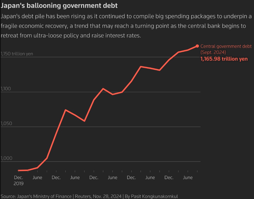 智通财经APP获悉,日本央行近期放弃了长达十年的激进刺激政策,此举对政府的财政计划构成了重大挑战,迫使政府重新评估通过增加债务来资助大规模支出计划的可行性。同时,政治家们提出的永久性减税要求进一步加剧了这一困境。日本首相石破茂政府计划投入13.9万亿日元(约920亿美元)的补充预算,以缓解生活成本上涨带来的影响。然而,接受反对党提出的永久性减税要求可能导致明年税收收入减少高达4万亿日元。随着日本央行退出超低利率政策,日本庞大的债务负担——高达1,100万亿日元,几乎是其经济规模的两倍——将面临更高的融资成本。