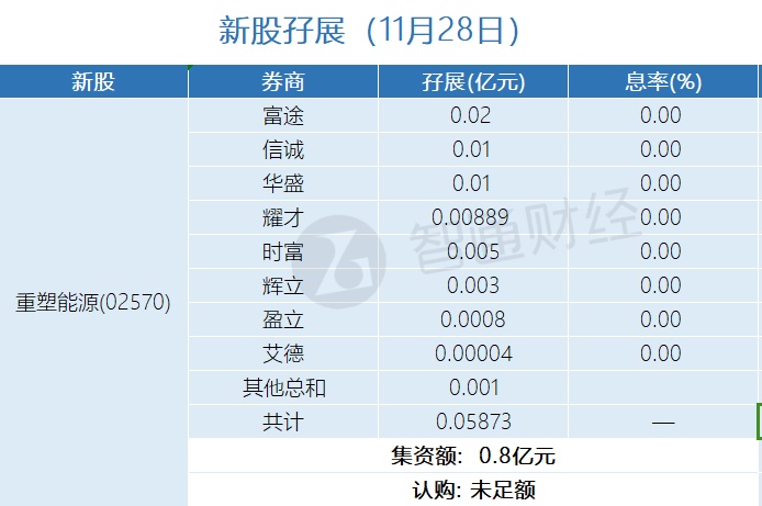 智通财经APP获悉,重塑能源(02570)正在招股中。截止11月28日,富途、华盛、信诚等券商合计为
