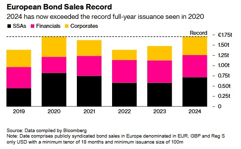 智通财经APP获悉,今年,欧洲债券发行量已达到创纪录的1.705万亿欧元(1.8万亿美元),超过了此前在2020年创下的最高水平。