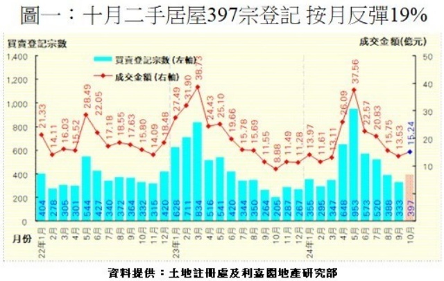 利嘉阁地产研究部主管陈海潮表示,美国于九月下旬宣布减息,本地多间主要银行亦随即仿效,扫除了居屋客对入市的疑虑,二手居屋登记量历经数月跌势后始见转稳,十月份重拾升轨。根据土地注册处最新数据显示,十月份全港录得397宗居屋二手买卖登记(数字主要反映九月中旬至十月上旬居屋第二市场及自由市场市况),较九月份的333宗环比增加19%,终止四连跌,于400宗边缘水平喘稳,为近3个月新高;至于期内成交总值录约15.24亿港元,较前月的13.53亿港元,环比同步上升约13%。