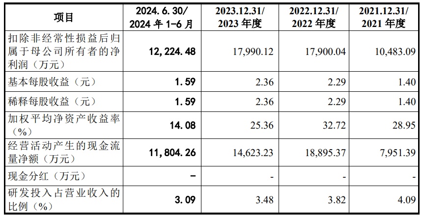财务方面,于2021年度、2022年度及2023年度,公司实现营业收入分别约为5.24亿元、7.98亿元、10.25亿元。公司净利润分别约为1.03亿元、1.76亿元、1.82亿元人民币。