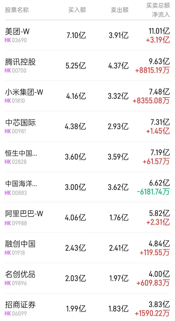 中国移动(00941)获净买入2.6亿港元。消息面上,根据工信部公布的数据显示,10月电信服务总收入同比增长稳定在 2.1%,新业务同比增长4.2%。中银国际发表报告指,将电信服务行业的评级从“中立”上调至“增持”,即使所有主要电信公司的市盈率基础均处于+1 标准差。原因是电信公司盈利增长和稳定的股息率的可预见性,这在当前市场状况下是理想的;化债的政策努力将有助于重新点燃云/人工智能基础设施支出,并验证电信公司在不断增长的中国人工智能基础设施市场中的领导地位。